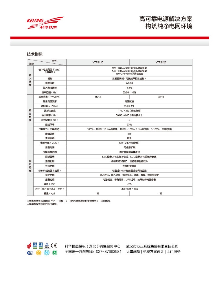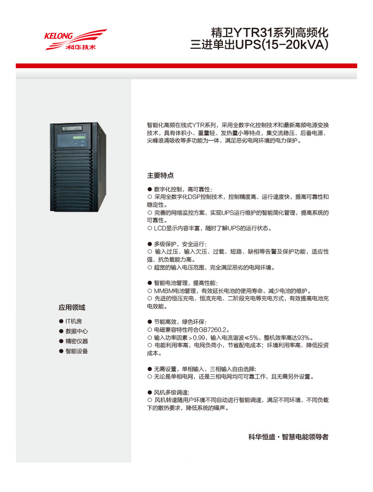 • 產(chǎn)品型號:精衛(wèi)YTR31系列高頻化三進(jìn)單出UPS(15-20kVA)